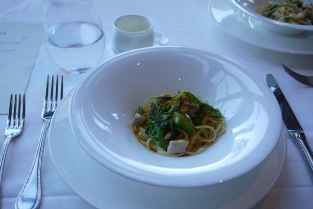 手打ちタリオリーニ カジキマグロと菜の花 からすみを添えて