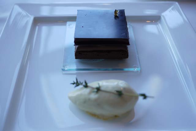 チョコレートのミルフィーユ仕立て タイムのアイスクリームを添えて